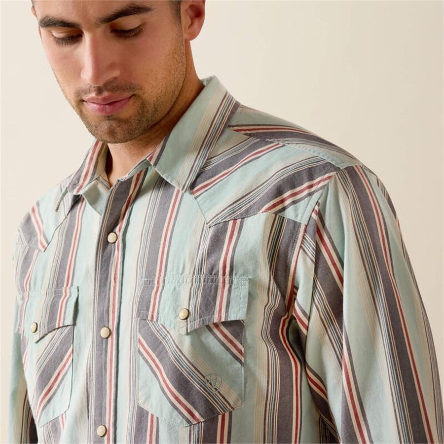 Ariat Mens Retro Hesperus Fitted Western Snap Shirts - Aquifer Plaid