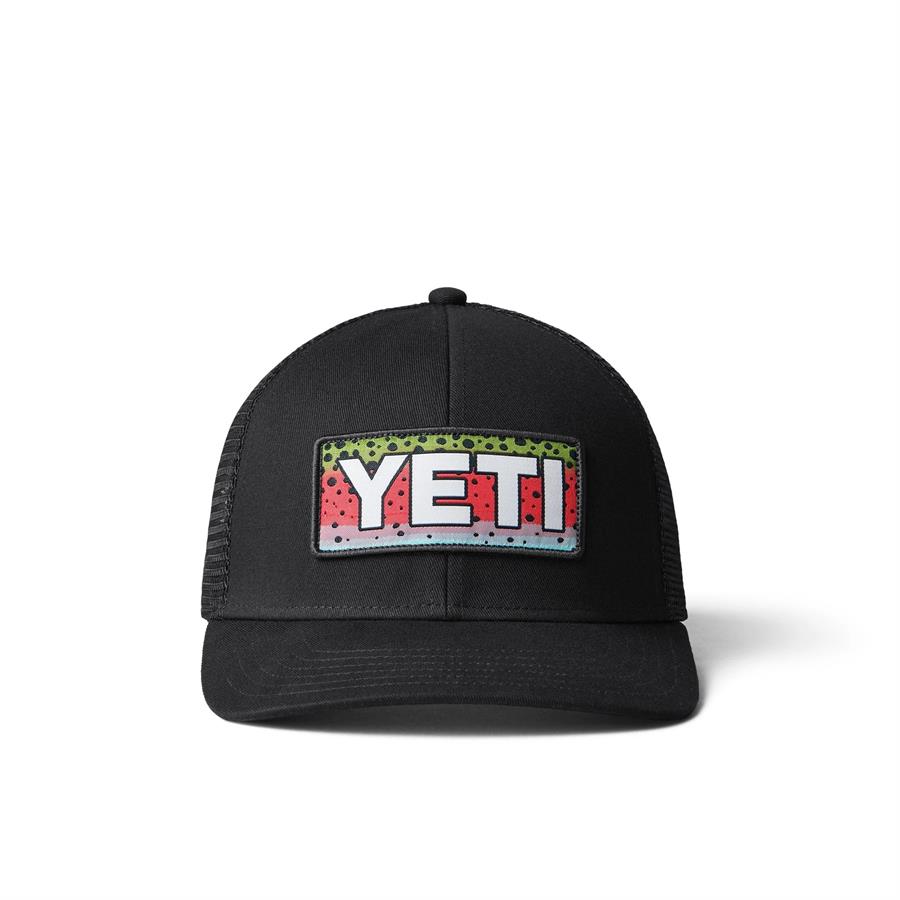 YETI Rainbow Trout Logo Badge Trucker Hat- Black